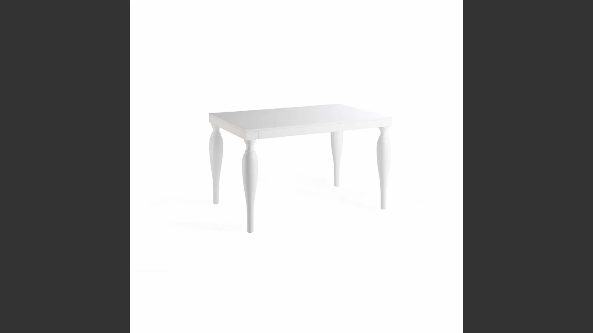 Tavolo allungabile con due prolunghe da 50 cm e Fusto con gambe e piano in legno laccato.