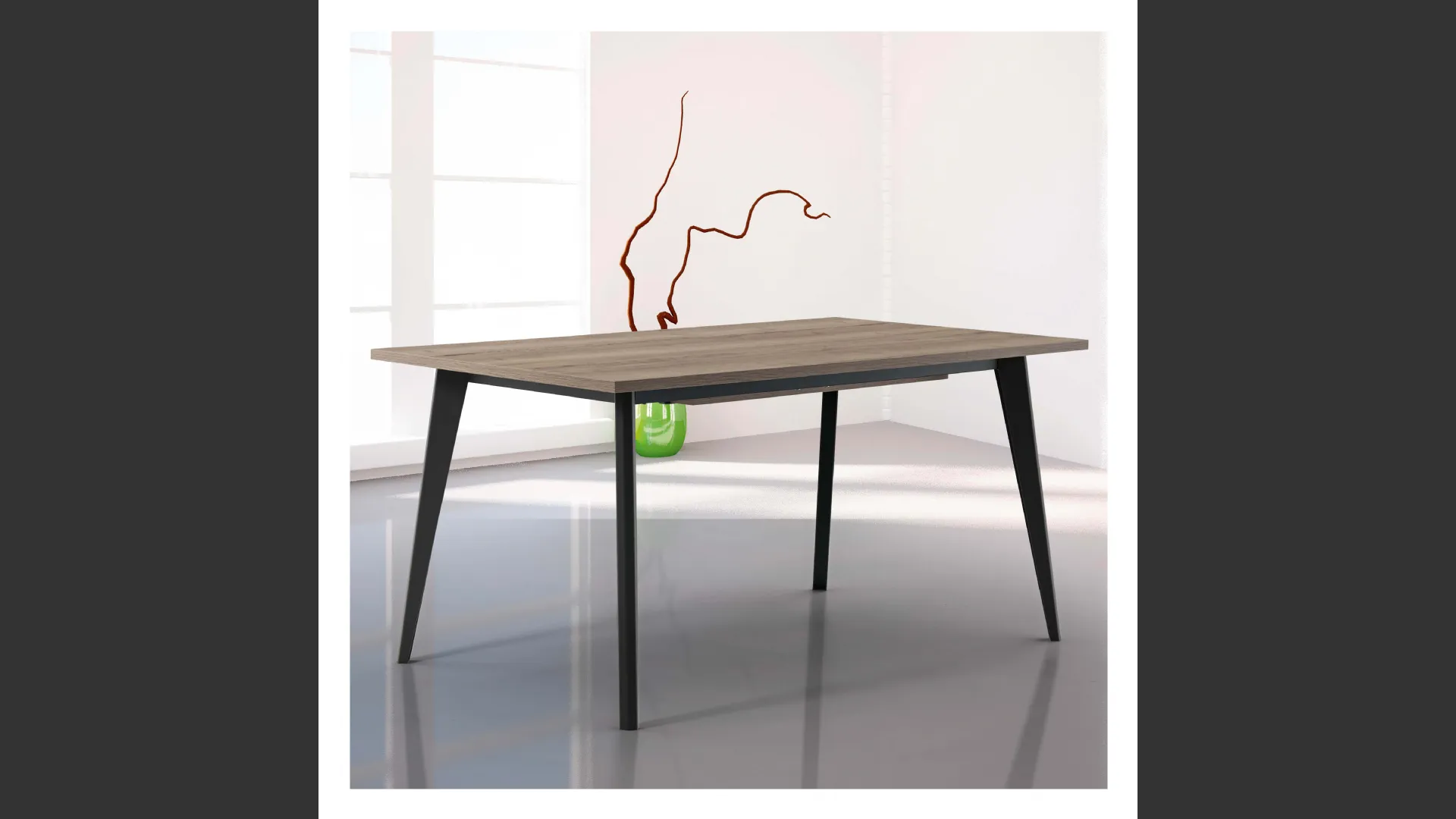 Tavolo allungabile con prolunghe. Fusto e gambe in ferro, Piano in Nobilitato.